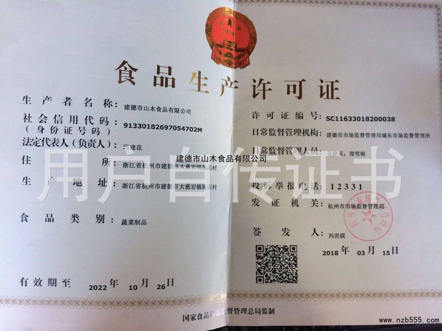 | 發(fā)證機(jī)構(gòu): | 杭州市市場監(jiān)督管理局 | 發(fā)證時間 : | 2018-03-15 |