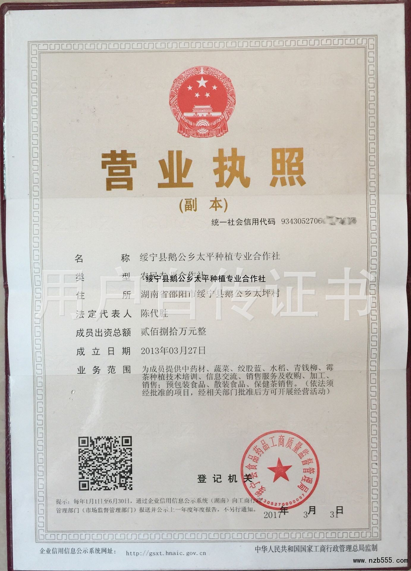 綏寧縣鵝公鄉太平種植專業合作社