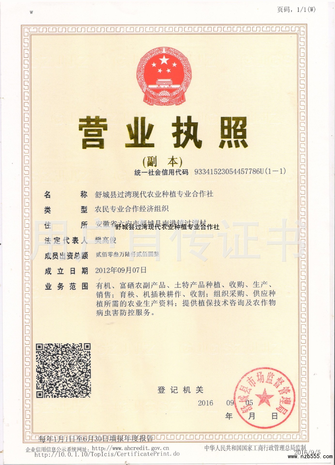 發(fā)證機(jī)構(gòu):   舒城縣市場監(jiān)督管理局 發(fā)證時(shí)間 :   2016-09-15