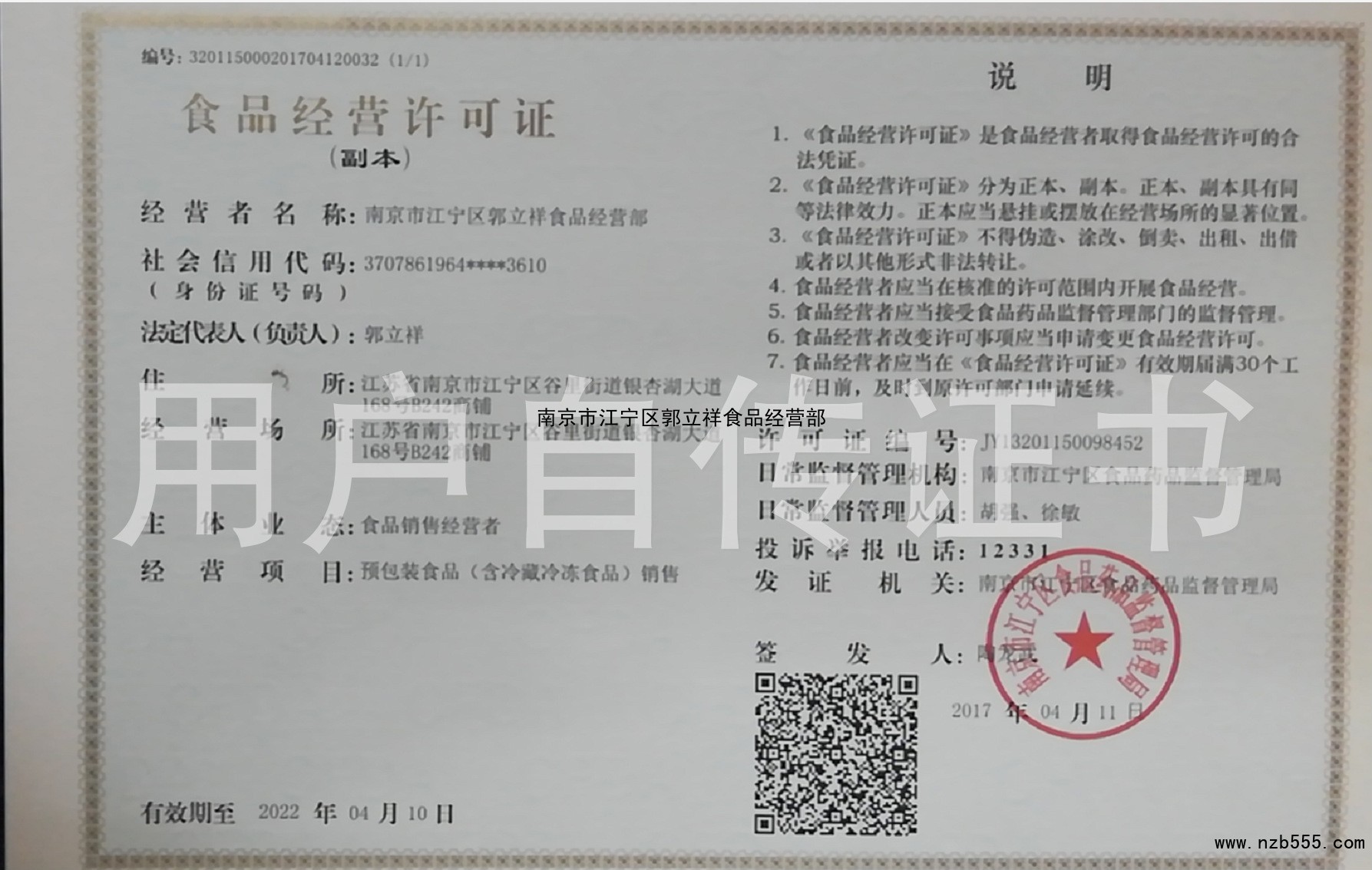 南京市江寧區郭立祥食品經營部