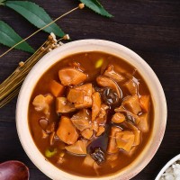 原料與配料雞胸肉、杏鮑菇、海參、蚌絲、素翅、胡蘿卜、青毛豆、雞肉、豬肉、鮑魚