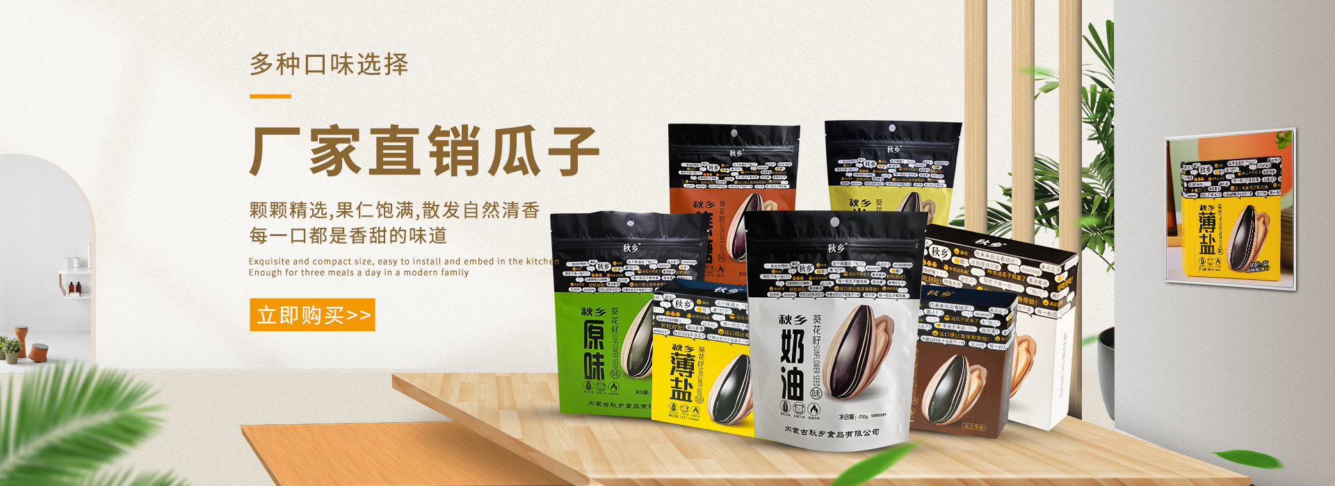 內(nèi)蒙古秋鄉(xiāng)實(shí)業(yè)有限公司簡(jiǎn)介 公司致力于河套地區(qū)優(yōu)質(zhì)農(nóng)產(chǎn)品葵花籽、西瓜籽“產(chǎn)供銷一條龍”貿(mào)易,經(jīng)過(guò)20多年的努力拼搏,從原料種植加工創(chuàng)建成地區(qū)品牌食品。煮制的黑瓜籽,紅瓜籽,葵花籽系列,以健康,美味的綠色食品為目標(biāo),服務(wù)國(guó)內(nèi)外市場(chǎng),是家庭消費(fèi),休閑旅游的絕佳食品!歡迎您品嘗、指導(dǎo) [詳細(xì)介紹]