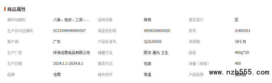 佳霖五香粉400g*20 袋