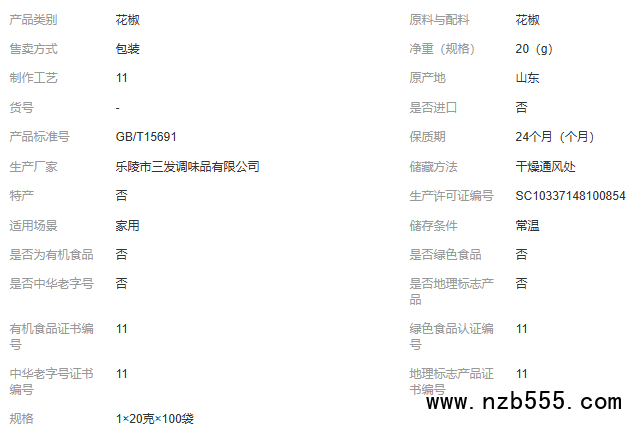 琪駿20g花椒袋裝燉鹵煮菜醬菜家庭餐館食用干花椒粒香料調(diào)料鹵料