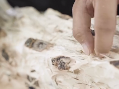 小伙將扎了鋼釘的沉香樹劈開后,聞了一下